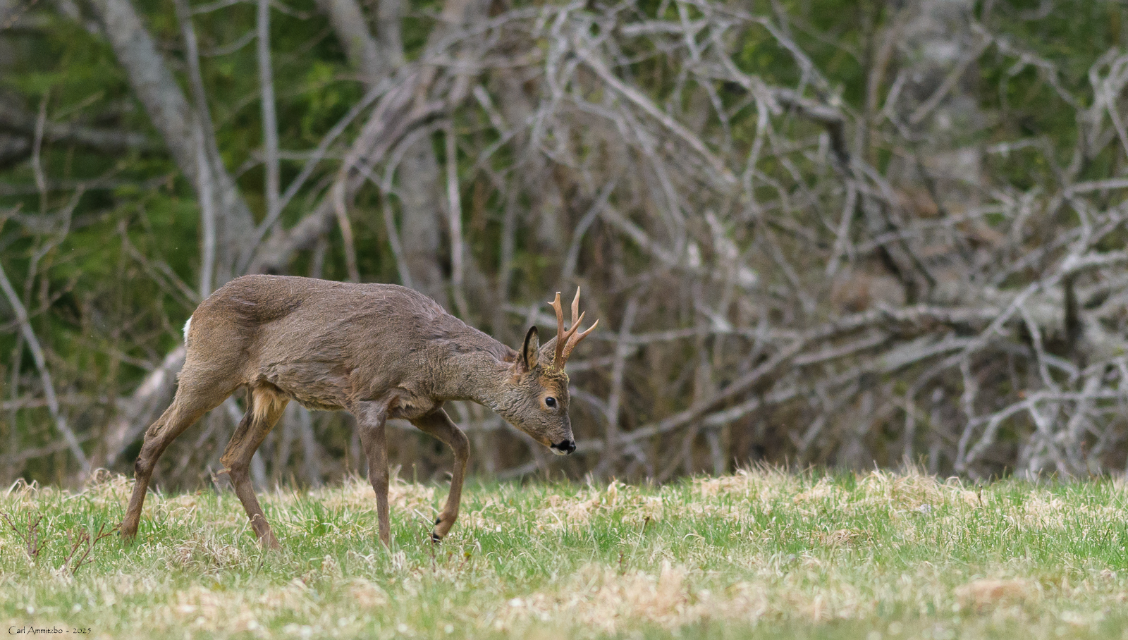 Jeg sætter mig forskellige steder og der kommer både rådyr og en enkelt elg frem om aftenen.