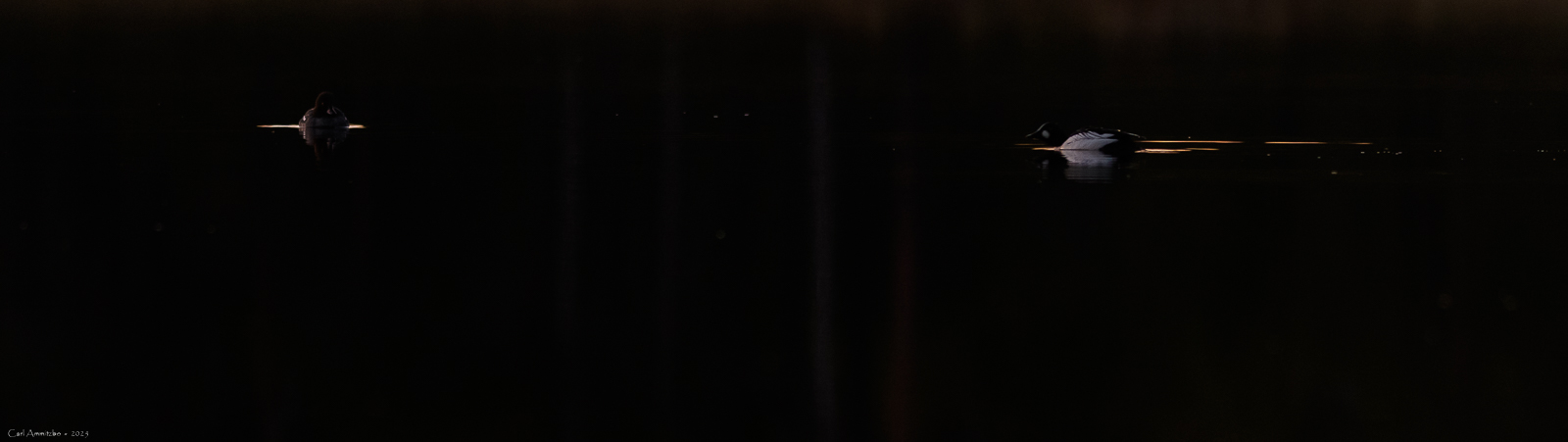 Jeg tager også en overnatning i mit skjul ved en lille skovsø, hvor jeg håber på, at der kan komme nogle spændende dyr forbi ved skumringstid. I skovsøen hygger et par hvinænder sig og søen bliver helt stille, da mørket falder på.