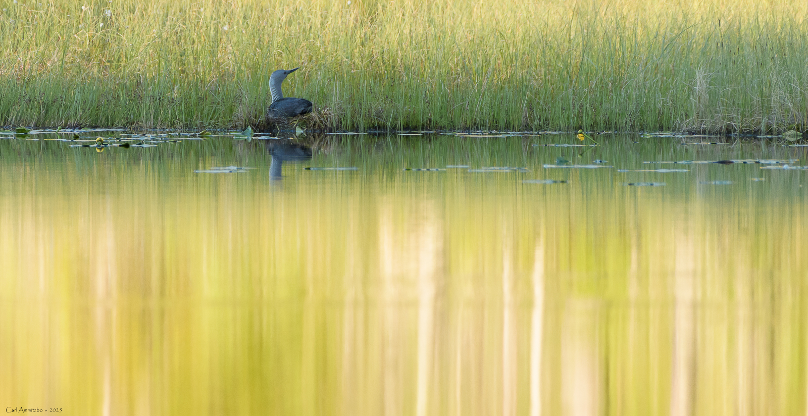 Jeg ser også en rødstrubet lom på rede.