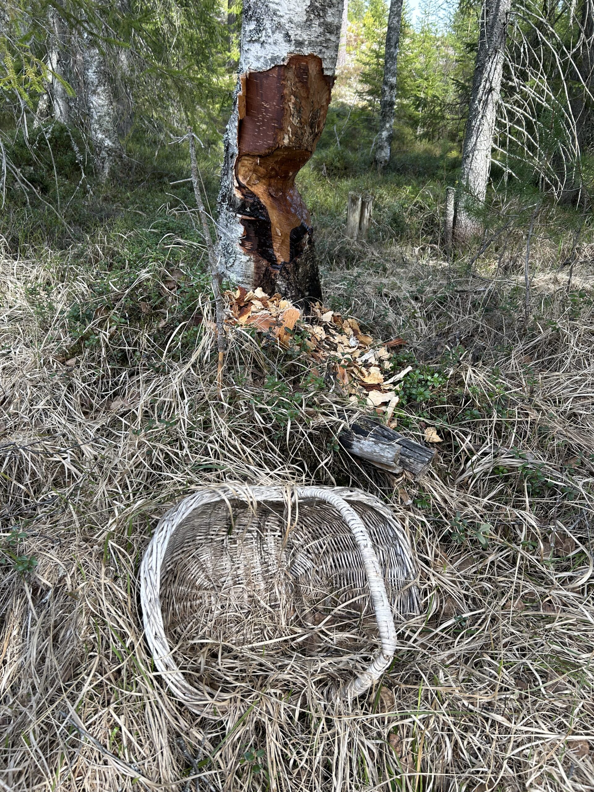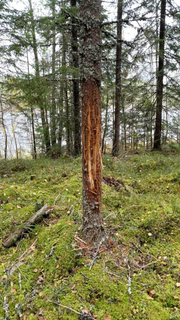 Mads finder også et træ i nærheden af det sted, hvor min søn Peter så en bjørn i sommers. Det kunne godt se ud til, at en bjørn har kradset lidt på det træ, hvis der ikke er tale om en elgtyr.