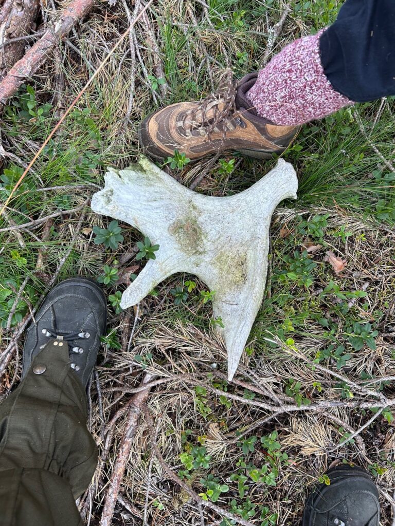I begyndelsen af august tager jeg op til huset sammen med min søster, Bente. Vores plan er at tilbringe nogle dage i huset og derpå tage på fjeldvandring. Desværre er Bente meget forkølet, så vi beslutter at droppe fjeldvandringen. I stedet kører og går vi nogle ture i området. Vi ser en del elge og er så heldige at finde en relativ stor kastestang fra en elgtyr.